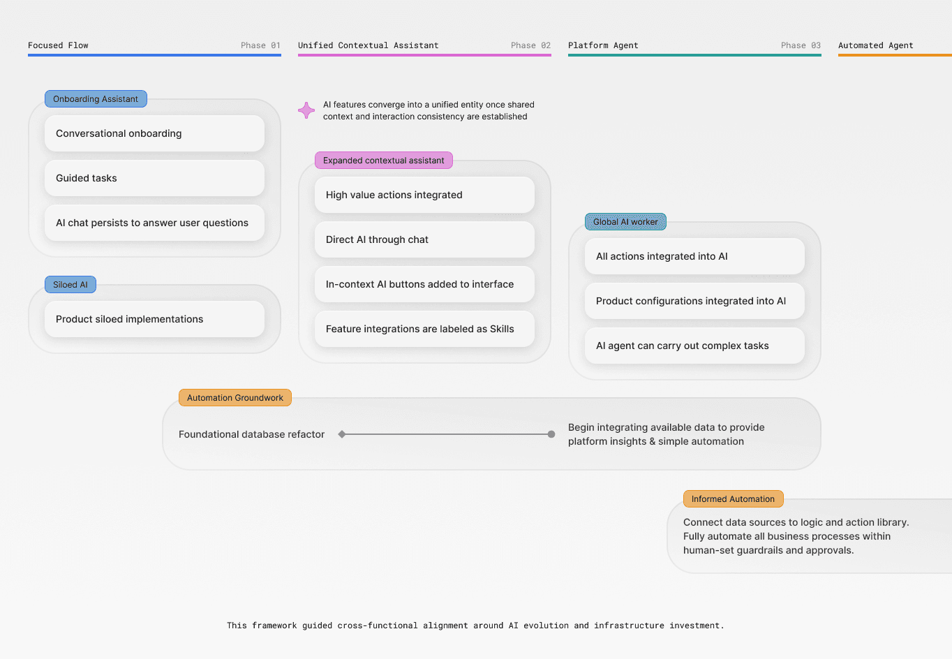 Established a platform-level AI roadmap with defined capability gates