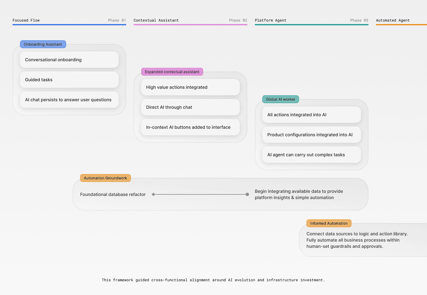Defined and designed an extensible AI onboarding assistant and long-term platform AI vision aligned across product and engineering.